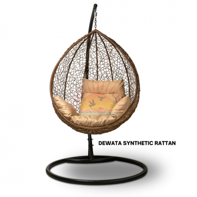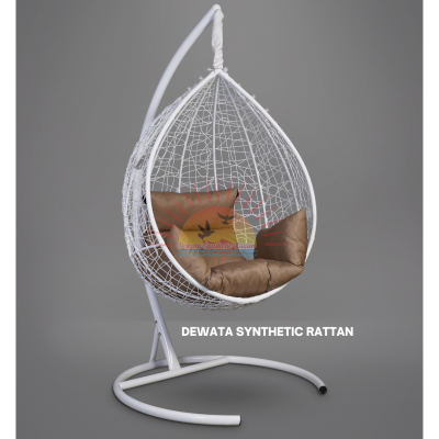 Brown Web Hanging Chair Synthetic Rattan with Stand